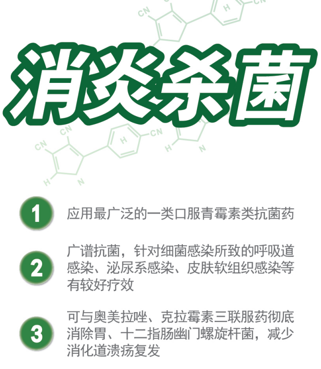 適用于敏感菌(不產(chǎn)β一內(nèi)酰胺酶菌株)所致的下列感染:中耳炎、鼻竇炎、咽炎、扁桃體炎等.上呼吸道感染,泌尿生殖道感染,皮膚軟組織感染,急性支氣管炎、肺炎等下呼吸道感染,急性單純性淋病。