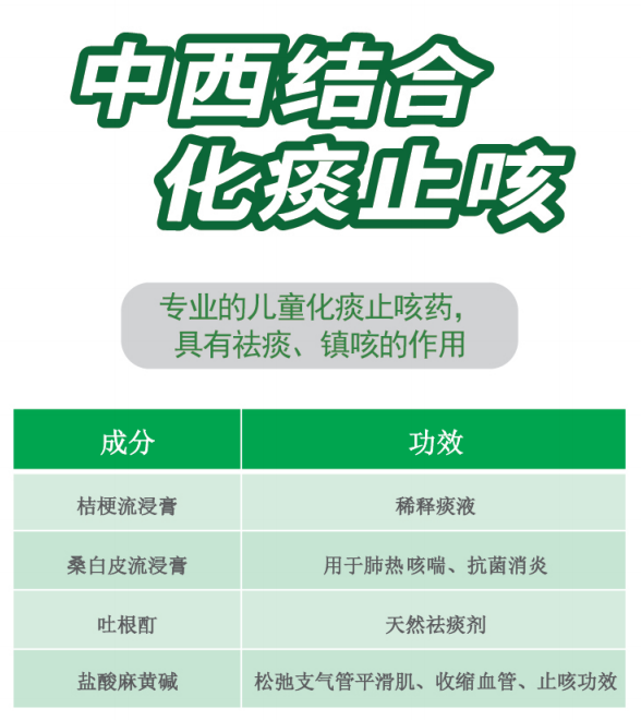 祛痰鎮(zhèn)咳。用于小兒支氣管炎所致的咳嗽、咯痰。